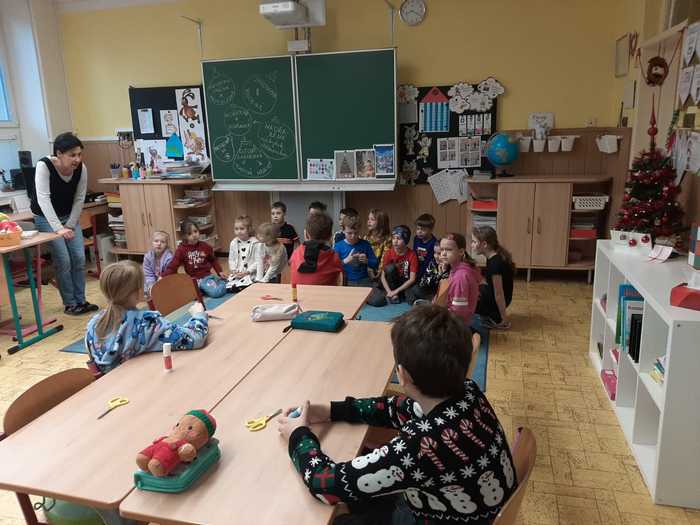 Dětí z 1.A a 2.B dnes společně prožily ve vánoční atmosféře báječné tvoření ozdob. Navzájem se kamarádi z obou tříd poznali a navázali nová přátelství.