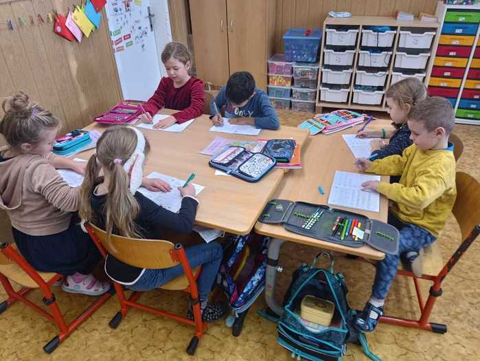 Děti zaznamenaly další pokrok - během měsíce prosince si postupně všechny zasloužily nová pera na psaní. Děti v naší třídě opravdu velmi úhledně píší a přechod na psaní perem zvládly na 1 *.
