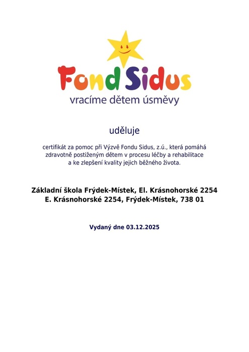 Úvod > Škola > Aktuality > PODPOŘENA VÝZVA FONDU SIDUS