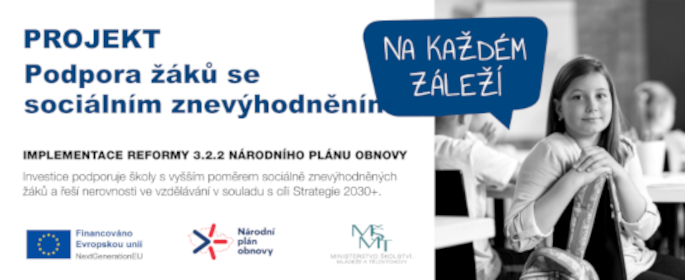 Investice podporuje školy s vyšším poměrem sociálně znevýhodněných žáků a řeší nerovnosti ve vzdělávání v souladu s cíli Strategie 2030+.